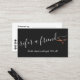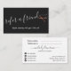 Modern and elegant referral card for hairstylists with faux copper rose gold scissors, black background and elegant calligraphy font.
