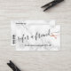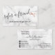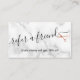 Modern and elegant referral card for hairstylists with faux copper rose gold scissors, white marble background and elegant calligraphy font.