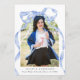 Elegant Coquette Blue Bow Photo Graduation Party Invitation.