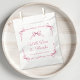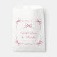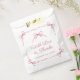 Cute party favour bags for your baby girl shower featuring a pink watercolor frame composed of delicate ribbons and coquette bows that blend a minimal aesthetic with a touch of vintage charm. The words "With Love & Thanks" and the name of the mother-to-be are showcased in an elegant pink script.