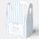Elegant favour box design with a watercolor pale blue bow and blue and white stripesr. Shown here for a wedding but all of the text can be personalised to your event (you can also add or delete text fields from inside the design tool). Would also work well for a baby shower, bridal shower or birthday.