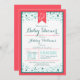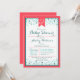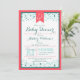 Personalise this elegant, formal coral pink, aqua blue green, white confetti cute baby shower invitation. Can be customised for baby boy or girl baby showers. Perfect year round classy invite for spring, summer, fall, or winter baby showers.