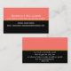 Stylish business card in living coral and black, with name, tagline or job title and contact details on the front. The reverse has a Scripture verse from John 3:16. All text is fully customisable, so you can personalise with your own personal address, business details, favourite Scripture or other text , or you can delete the text on the back and leave blank for notes. These business cards can also be used as elegant Scripture tracts for evangelism, advertising blurbs or informal invitations.