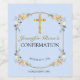 Celebrate your daughter's Confirmation by offering wine and sparkling wine with these elegant Confirmation wine labels for a girl. This design features a soft blue background with pretty floral bouquets in peach, cream, and blue. There is a gold frame surrounding the text and beautiful gold cross in the centre of the design. Complete these wine labels for communion by personalising with a name and the date of your event, along with your type of wine and the year.
