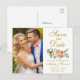 Elegant Watercolor Floral Coral Gold Photo Save The Date Engagement Announcement Postcard