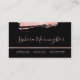 Elegant Coral Metallic Foil Paint Stroke Business Card | This pretty coral faux textured metallic foil paint stroke has a cursive calligraphy font that features your name on front and contact information on the back - you can change the background colour but we feel it looks best on black as it makes the pastel coral foil really POP- perfect for any fashion, art, interior decor or consultant - TIP: Looks best on the semi gloss card stock or signature gloss card stock - There is NO real foil on this product it is artistically created to appear real