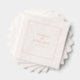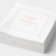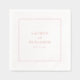 These wedding napkins feature a minimalist design with an off-white background and a delicate coral border, creating a subtle yet elegant contrast. The layout is centered around clean, serif typography that highlights the names and date in a soft coral hue, ensuring readability and sophistication. With ample negative space, the design exudes a serene and refined mood, perfect for formal occasions. Customizable text allows personalization, making these napkins ideal for weddings seeking a modern and understated aesthetic.