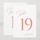 Guide your guests in style with this elegant wedding table number card featuring a modern coral script and clean serif design. The minimalist layout adds a touch of sophistication, while the soft white background ensures easy readability. Ideal for weddings, receptions, or formal events, this table number card blends classic elegance with contemporary charm. Customise with your table numbers and make your celebration truly seamless and beautiful.
