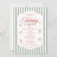 Elegant Corporate Christmas Company Holiday Party Invitations feature simple whimsical red Christmas elements on a green and white striped background with the text "Holiday Party" in elegant red calligraphy script typography. Stylish, trendy and chic for your corporate Holiday Party. Created by Evco Studio www.zazzle.com/store/evcostudio
