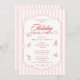 Elegant Corporate Christmas Holiday Dinner Party Invitations feature simple whimsical red Christmas elements on a pink and white striped background with the text "Holiday Dinner Party" in elegant red calligraphy script typography. Stylish, trendy and chic for your corporate Holiday Party. Created by Evco Studio www.zazzle.com/store/evcostudio