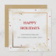 Send professional holiday wishes with this elegant business Christmas card featuring a golden square frame on a textured white background, festive golden fir branches, and red-golden stars. “Happy Holidays” shines in bold red Cinzel font with warm wishes in italic Open Sans. Backside includes grey-orange background, custom QR code, logo, and message—perfect for corporate greetings, client appreciation, and business branding.