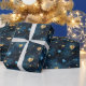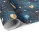 Elegant Cosmic Hearts in Blue and Gold Wrapping Paper