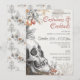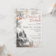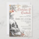 This vintage gothic invitation showcases an intricately illustrated skull accented with muted florals and autumn fruit, blending dark elegance with seasonal detail. The sophisticated script and warm grey and orange tones create a moody yet inviting look, perfect for setting the tone for an adult Halloween party.