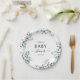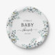 Watercolor Cotton flowers and eucalyptus greens. Dusty Blue Baby Shower Paper Plate. Celebrate with this cute collection