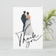 A beautiful wedding thank you card featuring an elegant illustration of a couple from behind, paired with modern handwritten script. The minimalist design conveys gratitude with timeless charm and sophistication.
