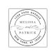 Elegant round rubber stamp with your names and return address.