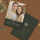 Capture the enchanting essence of your first Christmas together as a couple with this exquisite Elegant Couple's First Christmas flat photo card. The front boasts an elegant photo of you both, radiating love and togetherness. A touch of sophistication is added by the snowflake design, making this card truly special. Turn it over to reveal a timeless holiday green background adorned with a delicate snowflake, framing your heartfelt custom "Merry Christmas" message. Your signatures in elegant script provide a personal touch, making it a cherished keepsake for your loved ones. Share your joy and excitement this holiday season with a card that perfectly reflects your unique journey as a couple.