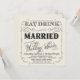Elegant Rustic Sign Board Couple's Wedding Shower Invitations -- Eat drink and be Married - Swirly, curly scrolls and fancy rustic frame on ivory cream white parchment look background. Add the bride and groom's names and shower party info in this easy to use template. Vintage style bold typography and elegant fancy script calligraphy - change the font styles to reflect your formal or semi-formal retro wedding theme. Square chalk board invitation style is perfect for trendy modern weddings with a fun touch of sophisticated romantic charm for the traditional bride and groom. NOTE: This product design is set-up for square cards only, which requires extra postage.
