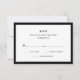 These elegant, stylish wedding RSVP cards feature chic black text on a white background, bordered in classic black.
