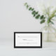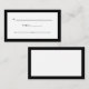 These elegant, stylish wedding escort cards feature chic black text on a white background, bordered in classic black.