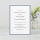 These elegant, stylish wedding rehearsal dinner invitations feature chic black text on a white background, bordered in dusty blue.