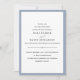 These elegant, stylish wedding invitations feature chic black text on a white background, bordered in dusty blue.