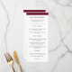 This elegant, stylish wedding menu features chic black text on a white background, bordered in marsala.