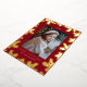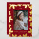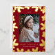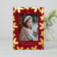 Elegant foil holiday card featuring your vertical photo framed by gold foil pine boughs with a cranberry background. Personalise the foil pine branch holiday card with a custom greeting, the year, and your family name. The card reverses to display your custom message in white lettering.