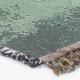 A quality printed throw has its advantages. This is a much finer weave throw than its loopier cousins, and though lighter, it is worth the investment for custom room accessorizing. The back is much prettier than the typical brown, and the fringe on the long sides very vivid, the selvage nicely done. Before photographing, I washed the throw in cold water, delicate, with a thicker woven throw the same size. On tumble dry low, this throw was dry in half the time as the other. This is a very practical quality if you use throws for furniture covers or to wrap up in frequently. The sleekness of the fabric makes it a great layer for accenting or protecting without the feeling of sitting on too much stuff. Perfect for napping or when you feel a light chill coming on. The color printing is beautiful and on this fabric, matched the design and color of my Photoshop image. This is an advantage for blending room fabrics and colors. The fringe on the short sides prints the colors from the design image and therefore varies from the side fringe. I streaked a white fractal line through the plaid pattern to give the illusion of weaving. This printed as crisp as an illusory thread, and put some white in the short side fringe, showing another advantage of print vs loomed- for artistic purposes, line lines, detail, and color integrity can be planned and preserved. My loomed throws have color limitations and more of a needlepoint texture. Print throws reproduce an exact image. The throw felt a little stiff straight out of the package, but this went away in the first delicate wash. Of course I searched the wash water for ink or bleeding and there was none.