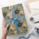 Elegant Cream & Black Roses on Sage Green & Gold Wrapping Paper
