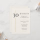 Celebrate a milestone birthday in timeless style with this elegant cream and gold 30th birthday invitation. Featuring refined typography, a minimalist layout, and a soft neutral palette, this design is perfect for an upscale dinner, cocktail party, or intimate celebration. Fully customizable for name, date, and details.