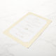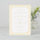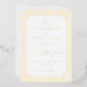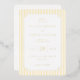 This elegant wedding invitation features a classic and formal design with a cream-colored background accented by gold stripes, creating a warm and sophisticated aesthetic. The layout is structured and symmetrical, with a mix of script and serif fonts that add an air of refinement. Gold borders frame the text, guiding the eye to the central content, while the customizable placeholders allow for personalization. Perfect for couples seeking a timeless and luxurious look, this invitation sets the tone for a memorable celebration.