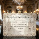 This design features a sophisticated monochromatic palette of soft creams, champagne beige, and warm neutral tones. The background showcases a detailed sketch of cathedral spires and gothic arches, framed by an intricate border of swirling acanthus leaves and roses. The typography blends traditional formal serif fonts with sweeping, elegant calligraphy. This is a flat printed image with a printed faux stone effect; it does not contain actual raised carving or 3D texture.