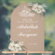 Modern Elegant cream and white flowers Muslim Islamic Wedding welcome Entrance Acrylic Sign with Bismillah rahman raheem in stylish Arabic calligraphy.