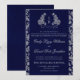Elegant Crest Monogram Navy Heritage Wedding Invitation