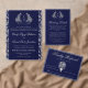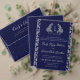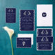 This design features navy blue heritage crest, delicate monogram initials, elegant script typography, a subtle luxury linen texture, with a detailed botanical leaf engraving pattern in silver on the backside of the card. Perfect for classic, royal-themed, old-money, and formal black-tie weddings. This product can be easily personalized. If you need help with the customization of the product or need matching products kindly please contact me via Zazzle.