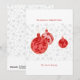 Featuring three beautifully illustrated red ornaments with intricate hand-drawn floral details, this non-photo Christmas card exudes a modern, simple yet classic charm. The ornaments hang gracefully against a soft snowflake background in light grey, making the design both festive and refined.