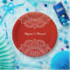 Elegant Crimson White Mandala Indian Hindu Wedding Paper Plate