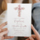 Elegant Cross And Pink Flowers Girl Baptism Invitation
