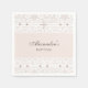 Personalize this Christian baptism paper napkin to create a meaningful and elegant touch for your special, faith-filled celebration. The design features a delicate cross in elegant soft beige pearl graphics, with white lace and pearl graphic details set against a soft pink beige background. The minimalist yet timeless style is perfect for a christening, simple baby dedication, or baptism. With its vintage look, mocha brown colored typography, and graceful script font, these paper napkins add a refined charm to your event while keeping the focus on faith and family. Be sure to see the collection for matching items to complete your coordinated look.