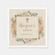 Elegant baptism/christening paper napkins for the baby girl with a Christian cross, and peach and cream-coloured watercolor floral. Customise with the child's name and date of baptism. Contact me for assistance with your customisations or to request additional matching or coordinating Zazzle products for your event.