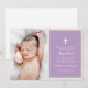 Elegant Cross Purple Photo Baptism Christening Invitation