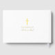 This elegant real foil guestbook makes a luxurious keepsake for a bride and groom and is a beautiful way for wedding guests to express their appreciation. The front cover and back cover of the guestbook feature the cross in real metallic foil. There is real metallic foil text on the front cover, on the spine and on the back cover of the guestbook; the text is easy to personalise online before ordering.