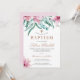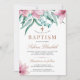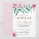 A modern spring or summer baby girl or boy baptism invitation featuring watercolor blush pink magnolia flowers, green foliage, and eucalyptus leaves and a classy handwritten style calligraphy script. +++++++++++ Easy to personalise it with your details! ++++++++++ Suitable for modern floral, outdoor garden or summer backyard elegant newborn baby christening ceremonies and receptions.