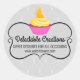 © 2020 Socialite Designs Inc. Elegant bakery packaging seal has an elegant cupcake design and a doodle banner frame. The background has an elegant grey pattern. Use these stickers to seal your baked goods boxes or pouches.