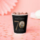 Elegant Custom 70th Birthday Party Paper Cups. Celebrate a milestone birthday with our Black and Gold Simple Elegant invitation, perfect for adding a touch of sophistication to your special day. This customisable design features a sleek black background adorned with elegant gold accents, creating a timeless and classy look. Personalise it further with a custom photo to make your invitation truly unique and memorable. Ideal for those who appreciate a refined aesthetic, this invitation sets the tone for a celebration that will be cherished for years to come.