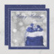Elegant custom blue Happy Holidays cards featuring a sack full of Christmas presents. Easily personalise these vintage-themed holiday cards online.