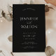 In its simplicity, the Elegant Custom Names Black Wedding Invitation features a casual minimalist design. The use of classic serif lettering contributes to the overall sophistication, while a monogram adds a personalised touch to the invitation. The black and white text creates a harmonious contrast, evoking a sense of timeless elegance.
