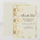 A unique elegant and sophisticated custom modern Save the Dates wedding invitation. Designed with a narcissus flower with gold frame on a beige background and black text with beige shadows, to emphasize the sophistication, elegance, and gala of the ceremony, the couple and their families. The text can be modified according to your needs.