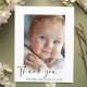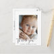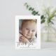 Our beautiful and elegant baby shower thank you postcard is a timeless and personal way to express your gratitude to loved ones. It combines sophistication and sentiment by featuring your custom baby photo framed within a simple yet elegant white border. Beneath the photo, a modern and stylish script gracefully spells out "Thank You," adding a touch of warmth and charm. Below the script, your baby's details are displayed in elegant, clean lettering, providing a refined and polished finish. Press the button to change the text and the image, you will love it!